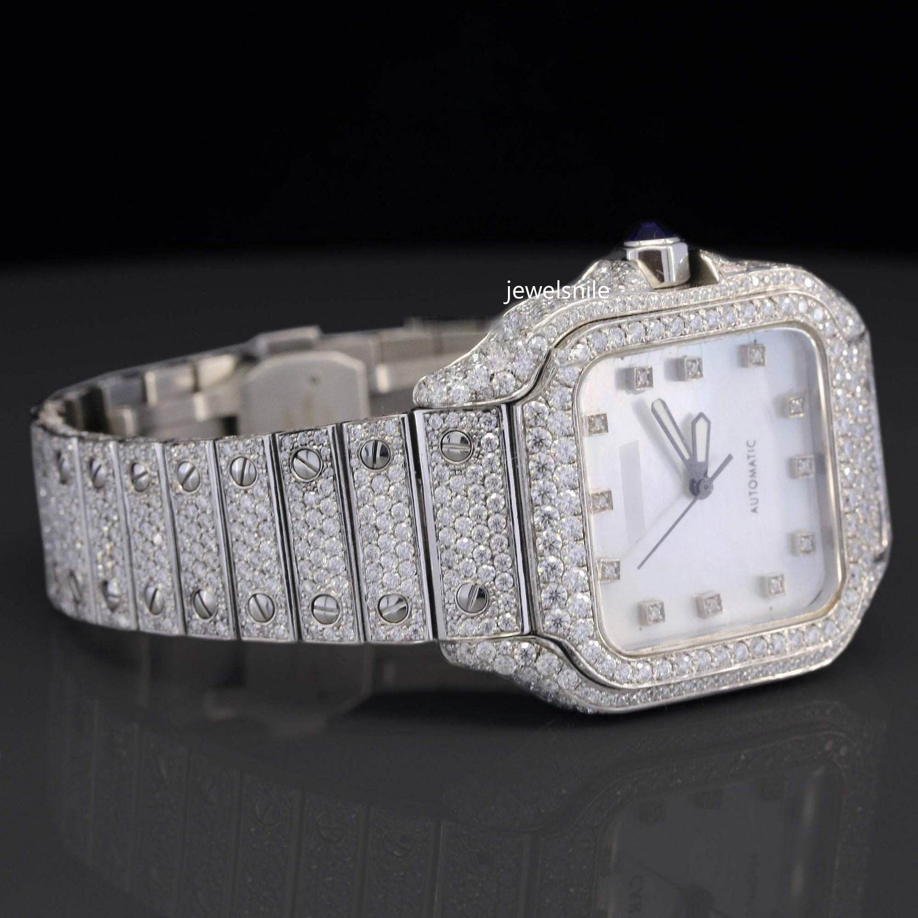 White Unique Dial Automatic Japan Movement Moissanite Watch Featuring a dazzling 25-28 CT moissanite diamond.  diamond tester passed and a modern Japan Automatic Movement watch.