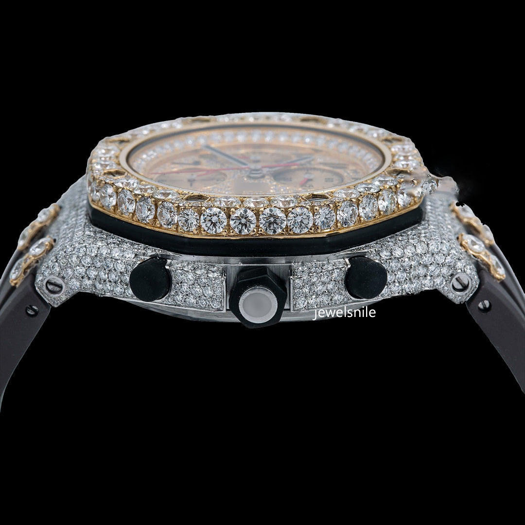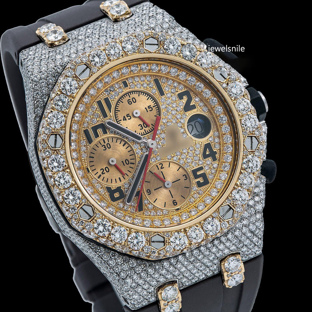 Awesome Black Dial Moissanite Watch Featuring a dazzling 25-28 CT moissanite diamond. diamond tester passed and a modern Japan Automatic Movement watch.