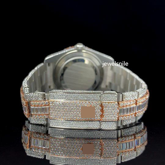 Classi Blue Number Dial and Automatic Day-Date Rose Gold Japan Movement Moissanite Diamond Watch Featuring a dazzling 25-28 CT moissanite diamond. diamond tester passed and a modern Japan Automatic Movement watch.