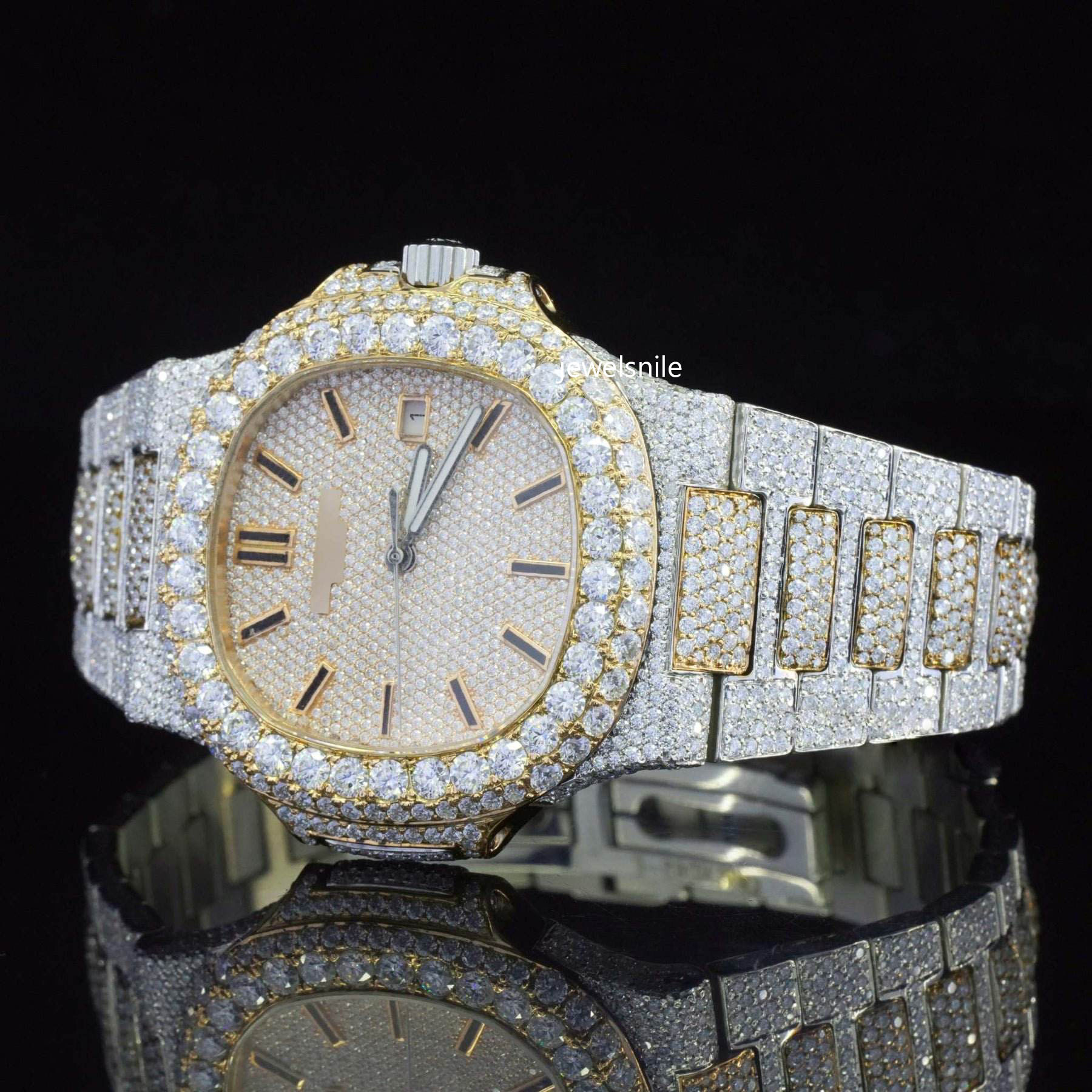 Automatic Roman Number Dial Automatic Japan Movement Moissanite Watch Featuring a dazzling 25-28 CT moissanite diamond.  diamond tester passed and a modern Japan Automatic Movement watch.