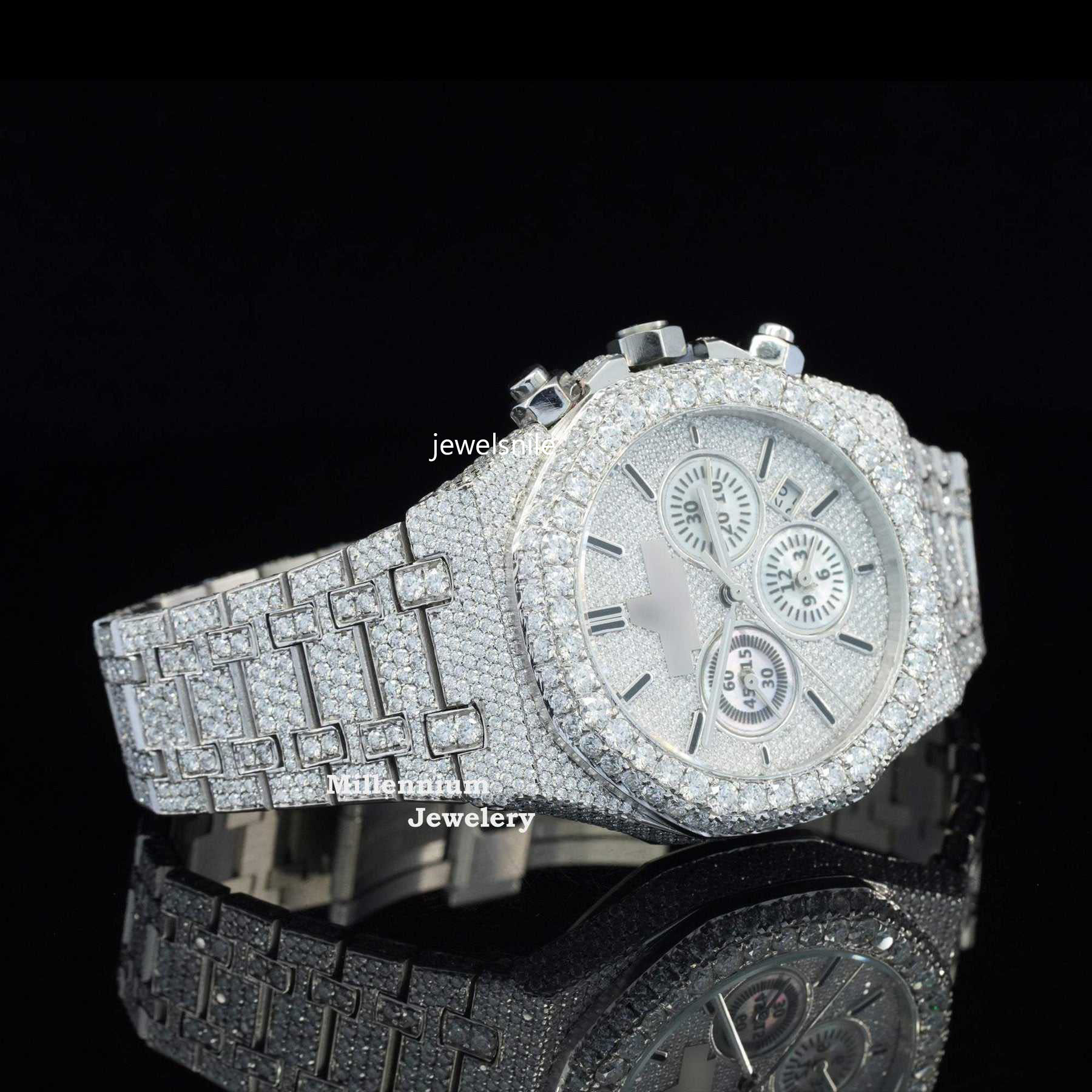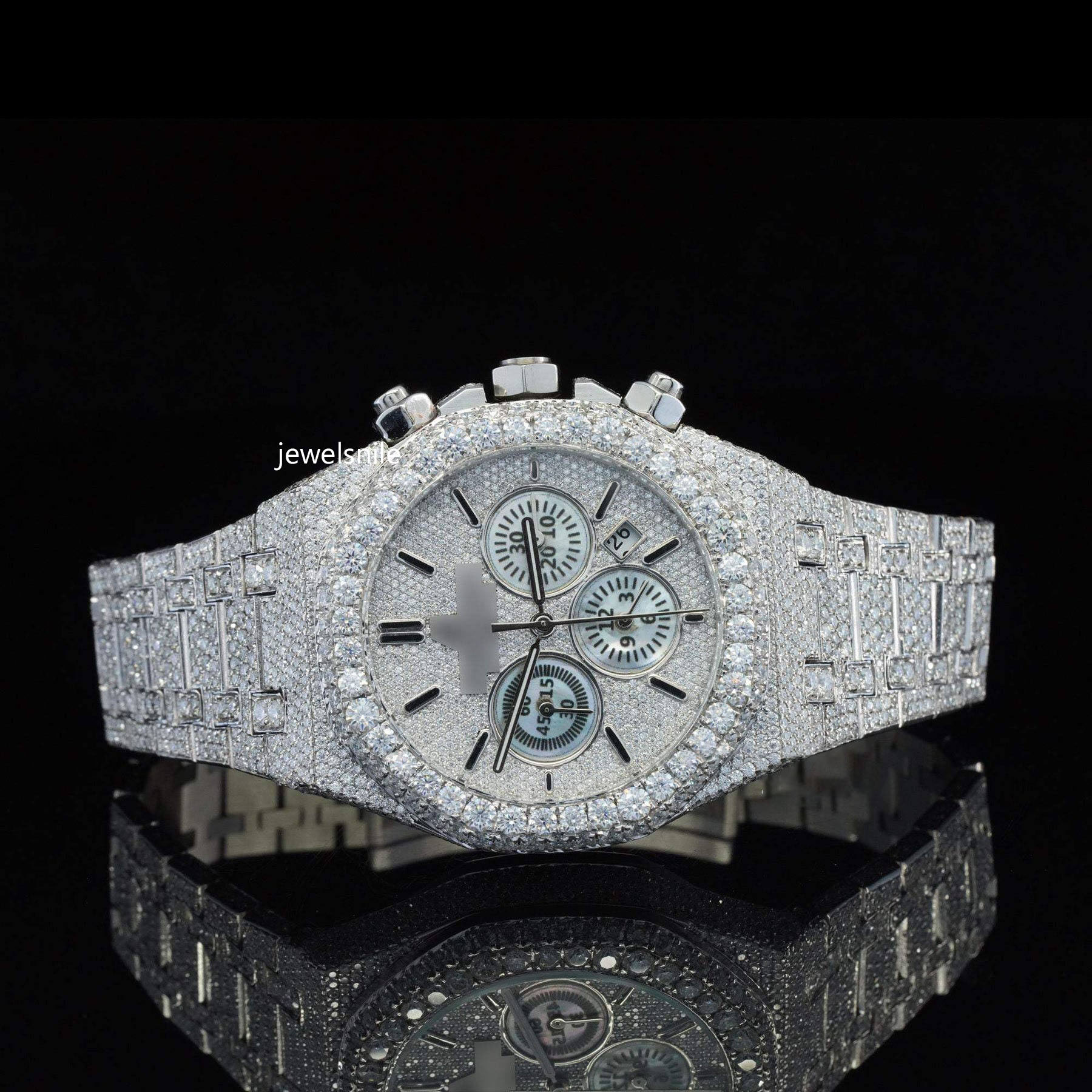 Fabulous Iced Out Automatic Moissanite Diamond Wrist Watch For Men 25 CT moissanite diamond. Tested by a diamond tester and a sophisticated Japan Automatic Movement watch.