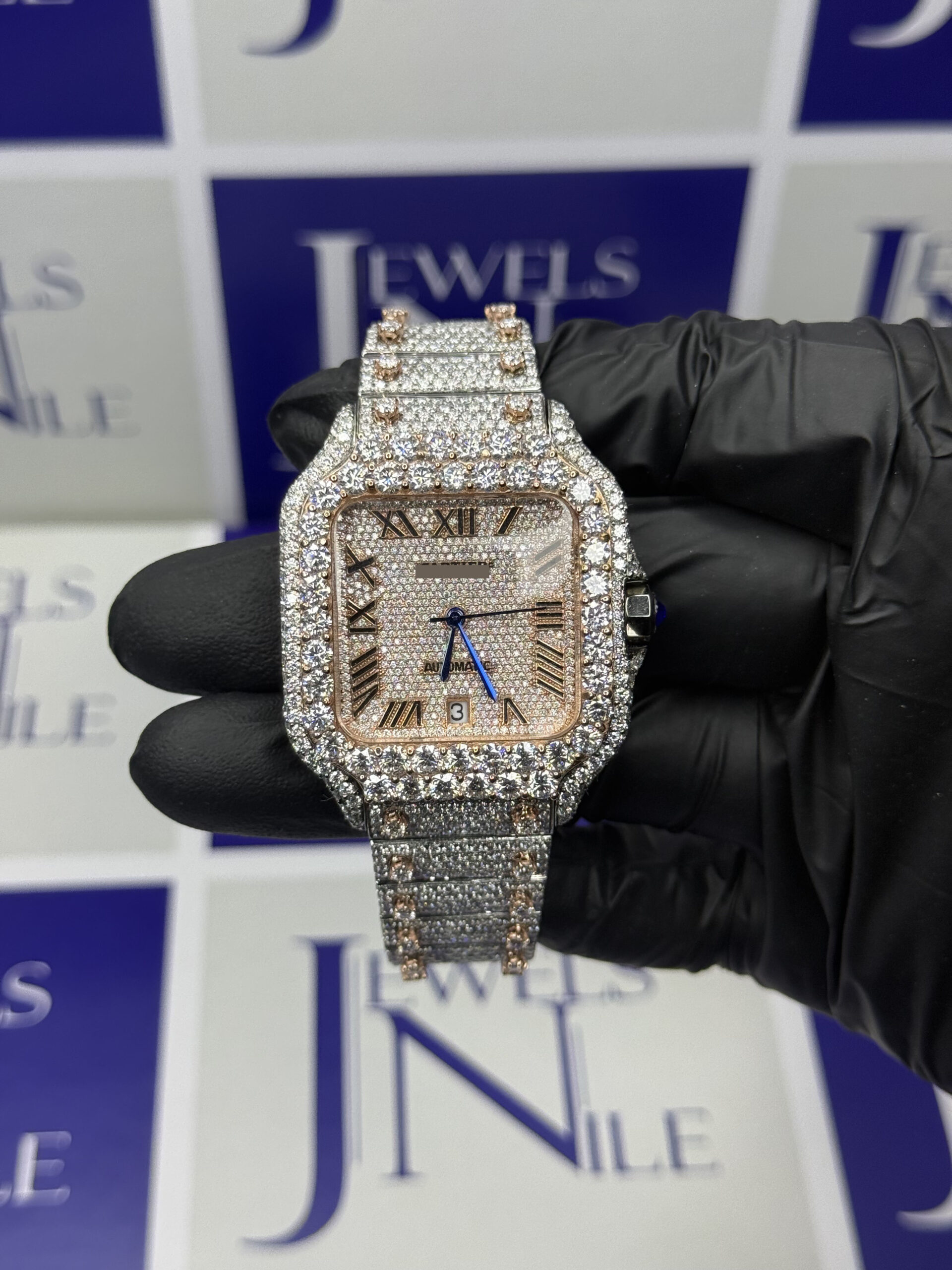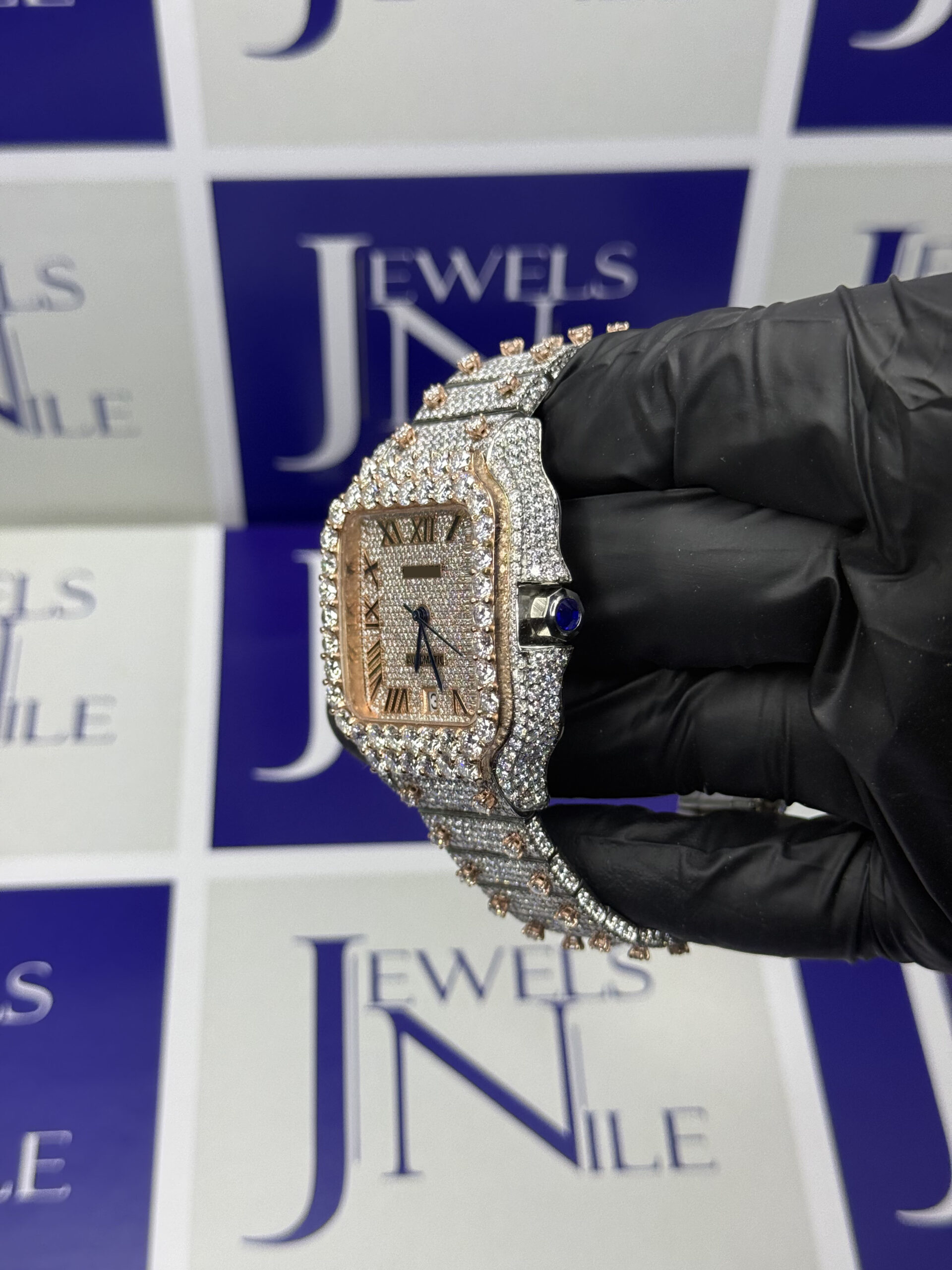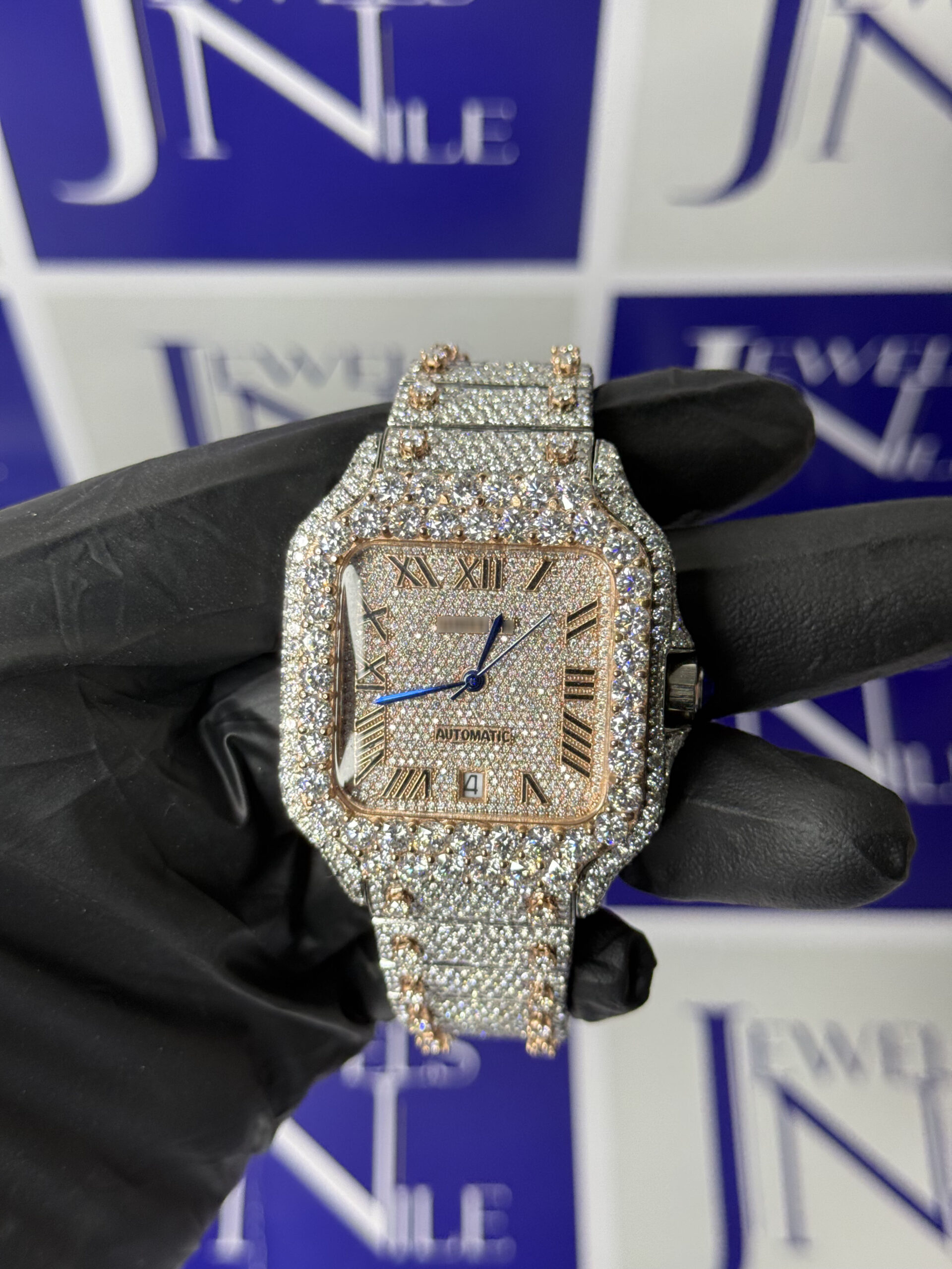 Buy rose Gold roman Dial and automatic fully Iced out Moissanite diamond watch from Jewelsnile.