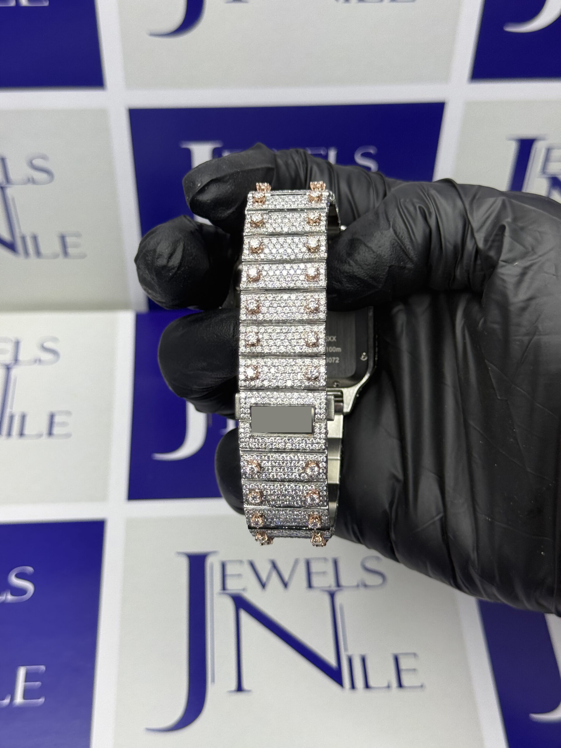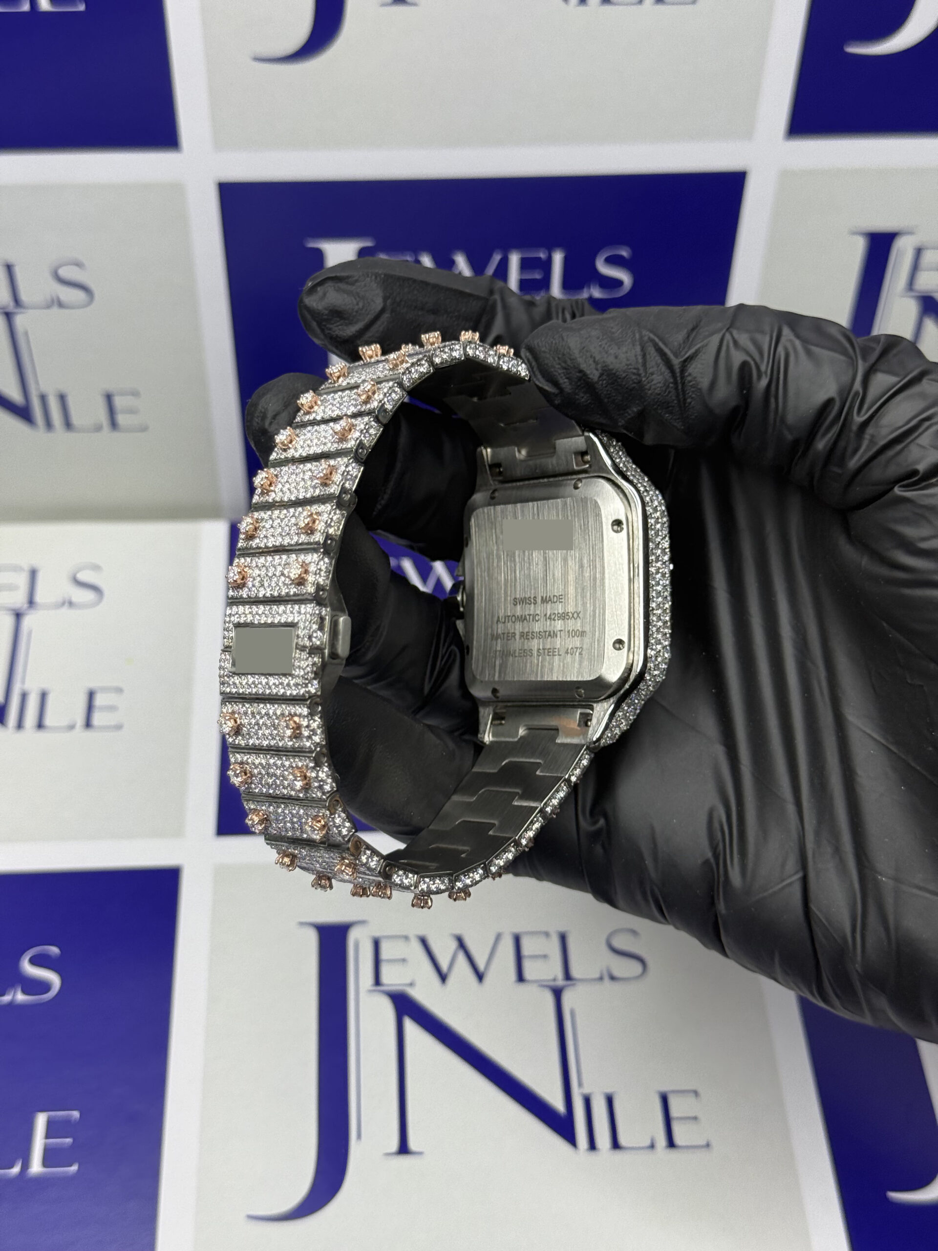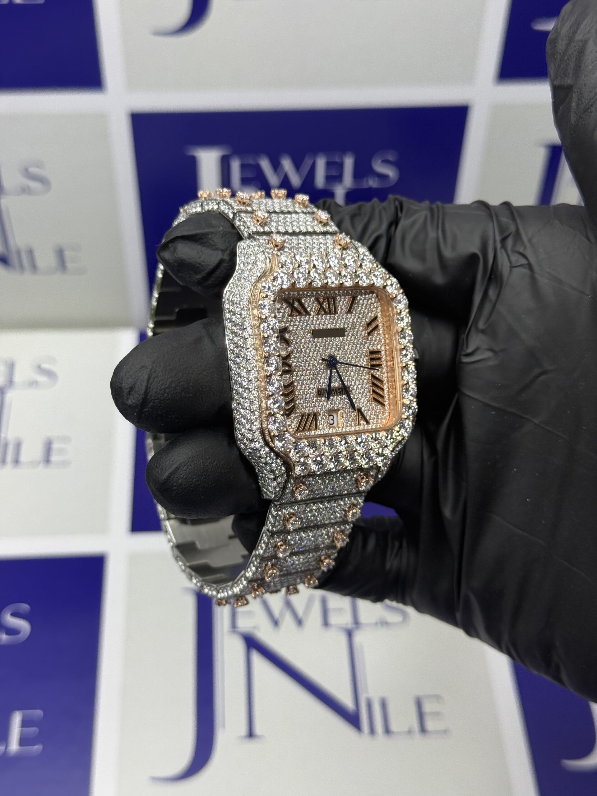 Buy rose Gold roman Dial and automatic fully Iced out Moissanite diamond watch from Jewelsnile.