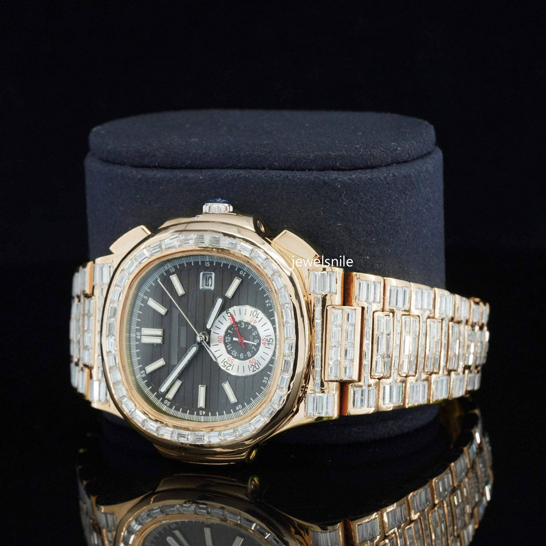 Iconic Roman Number Hip Hop Iced Out Moissanite Watch, Buy Luxury watches form Jewelsnile. We provide all watches are diamond tester passed.