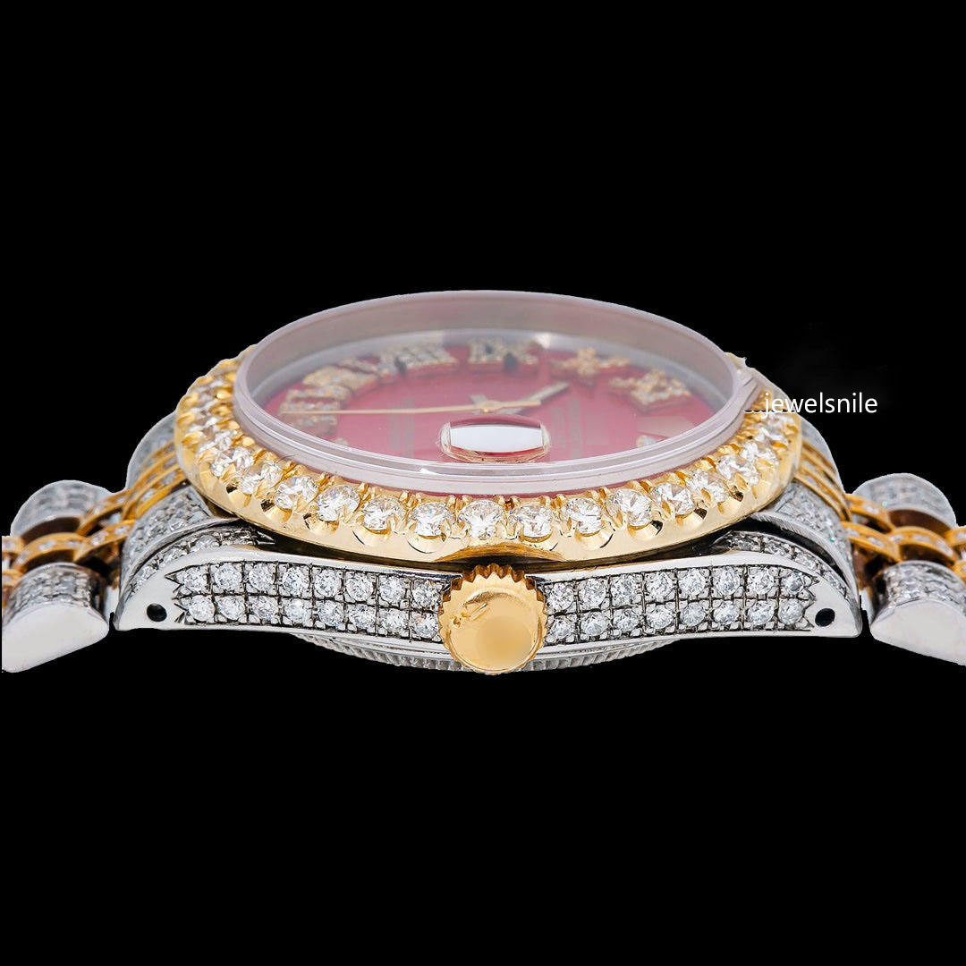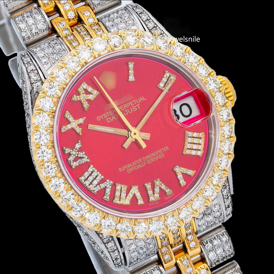 Luxurious yellow Dial Moissanite roman number Two Tone Watch Featuring a dazzling 25-28 CT moissanite diamond. diamond tester passed and a modern Japan Automatic Movement watch.