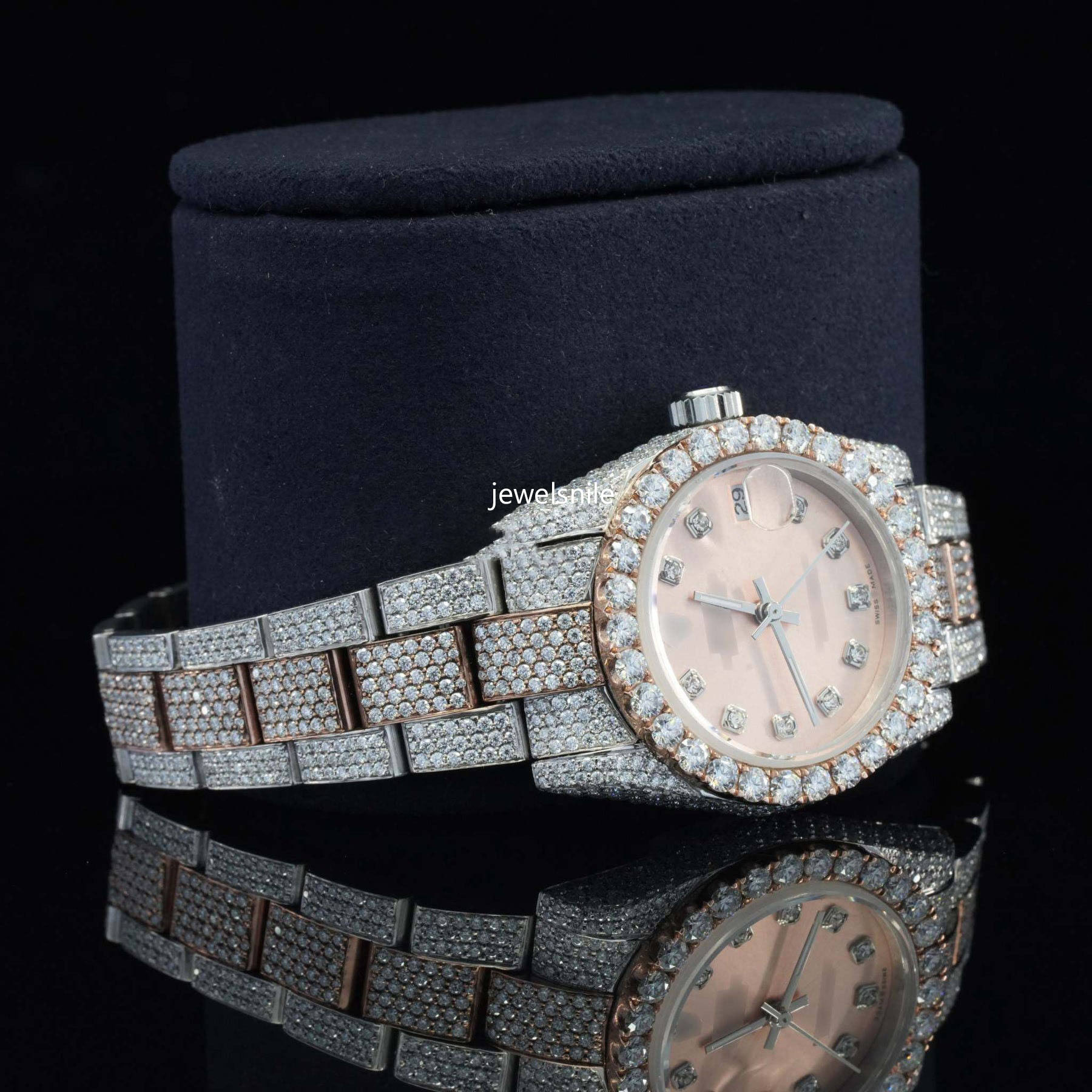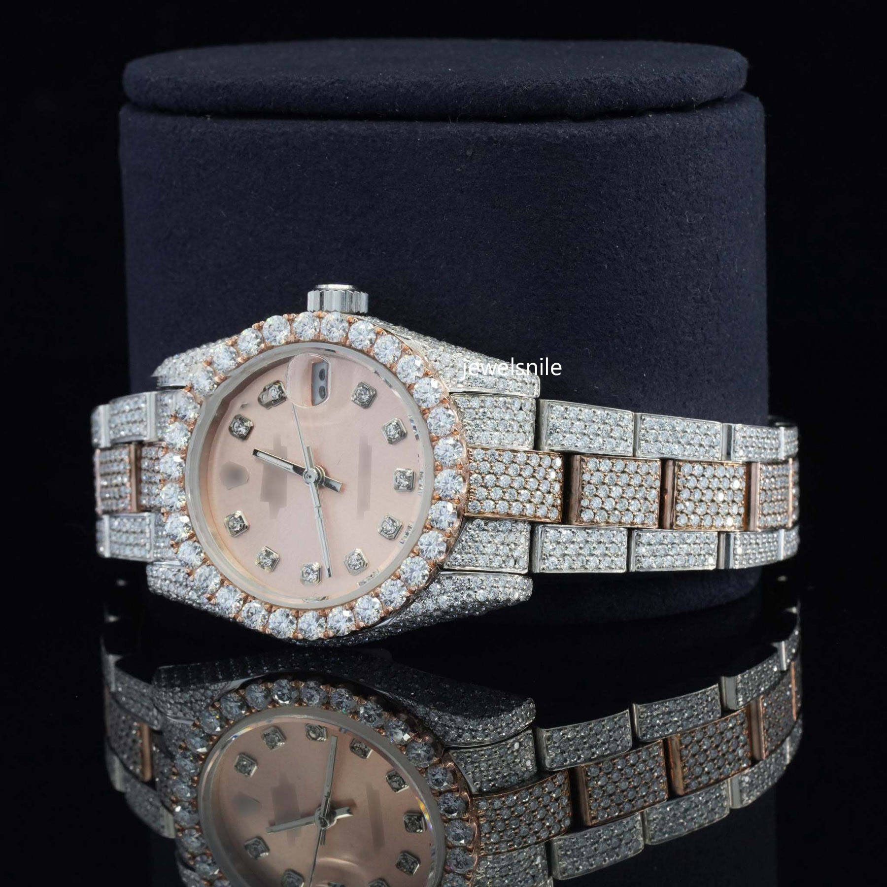 Marvelous Iced Out White Dial Moissanite Diamond 25 CT moissanite diamond. Tested by a diamond tester and a sophisticated Japan Automatic Movement watch.