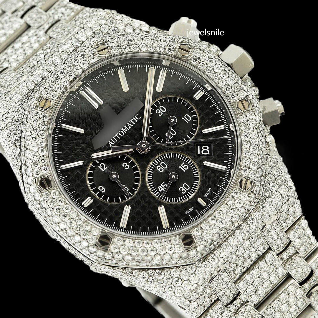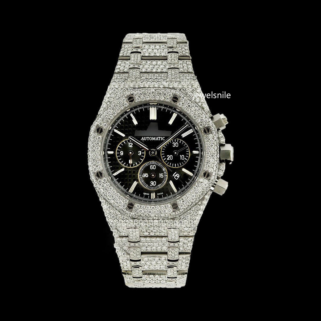 Moissanite Diamond Iced Out Automatic Watch Featuring a dazzling 25-28 CT moissanite diamond. diamond tester passed and a modern Japan Automatic Movement watch.