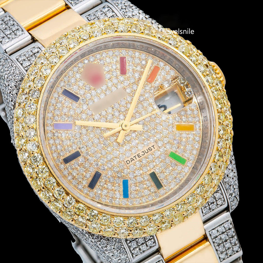 Rainbow Automatic Moissanite Watch Featuring a dazzling 25-28 CT moissanite diamond. diamond tester passed and a modern Japan Automatic Movement watch.