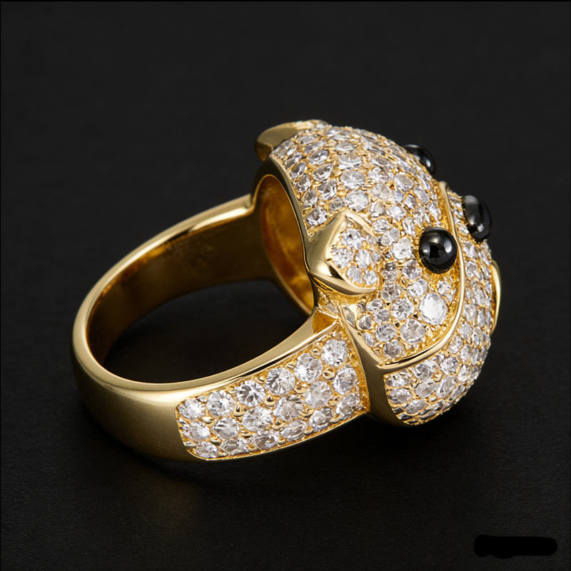 intoduction Sparkling Cubic Zirconia Pet Dog Design Jewelry Bulldog Ring for Women High Quality Lab Grown Stones