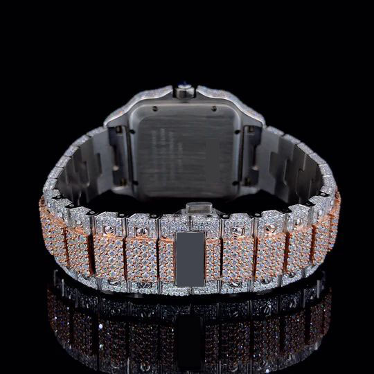 Stylish Marvelous Red arebic Dial Iced Out two tone rose gold Moissanite Watch dazzling 25 CT moissanite diamond. Tested by a diamond tester and a sophisticated Japan Automatic Movement watch.