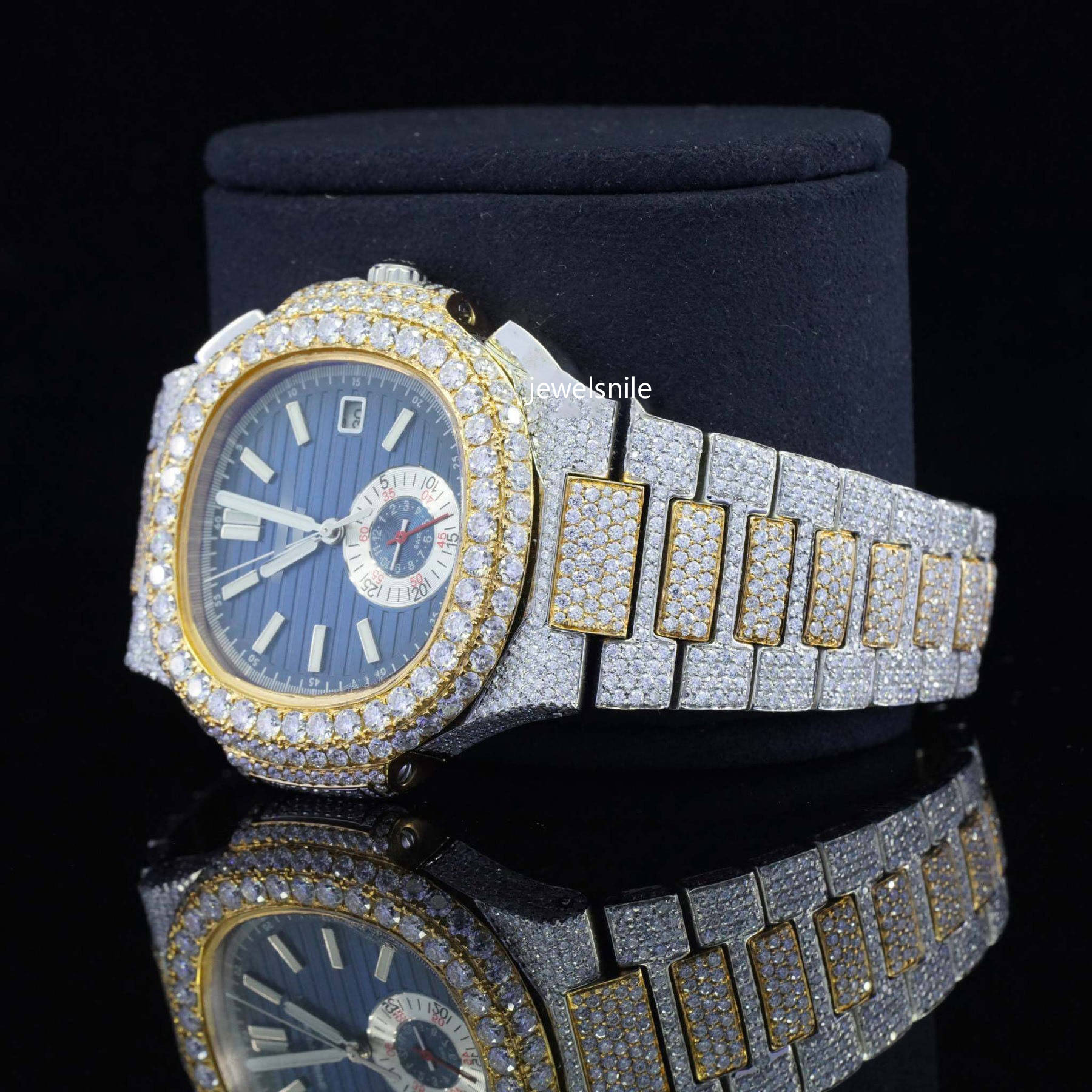 Stylish Moissanite Diamond Iced Out Automatic Watch Featuring a dazzling 25-28 CT moissanite diamond. diamond tester passed and a modern Japan Automatic Movement watch.