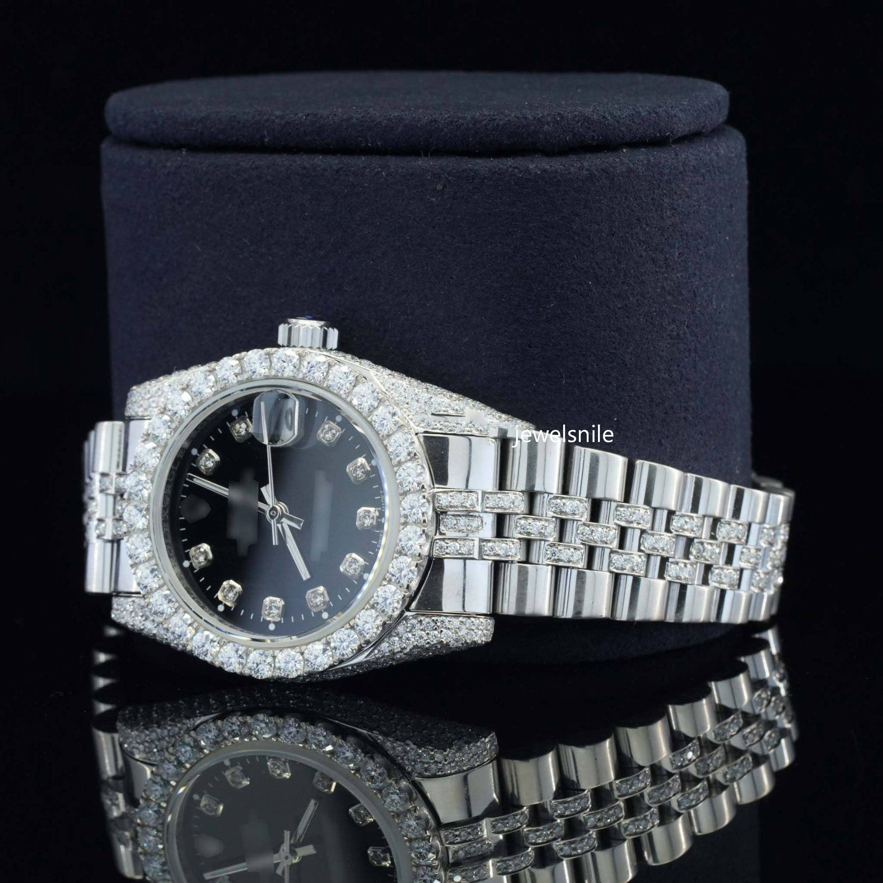 Superior Iced Out Moissanite Diamond Automatic Featuring a dazzling 25-28 CT moissanite diamond. diamond tester passed and a modern Japan Automatic Movement watch.